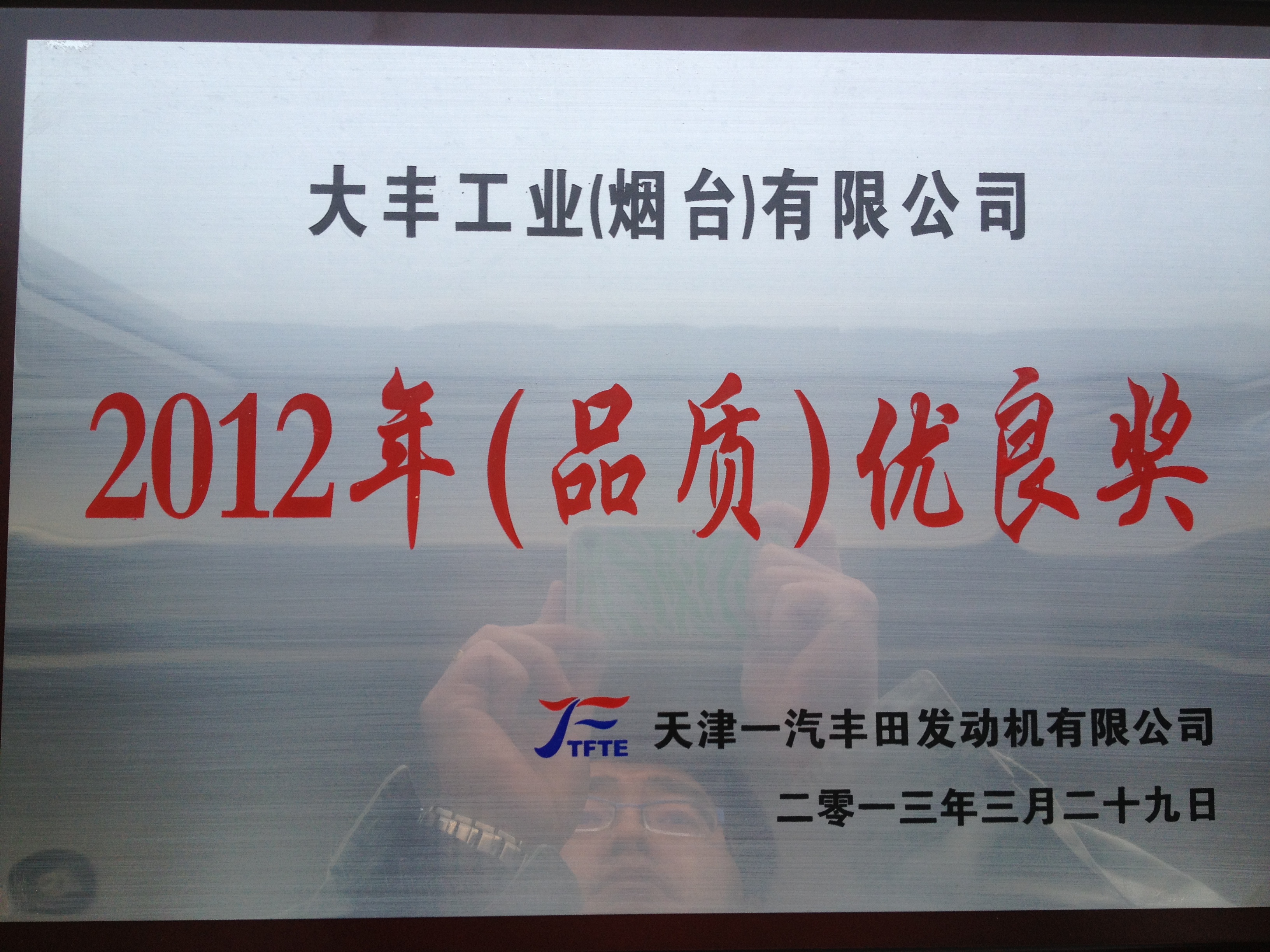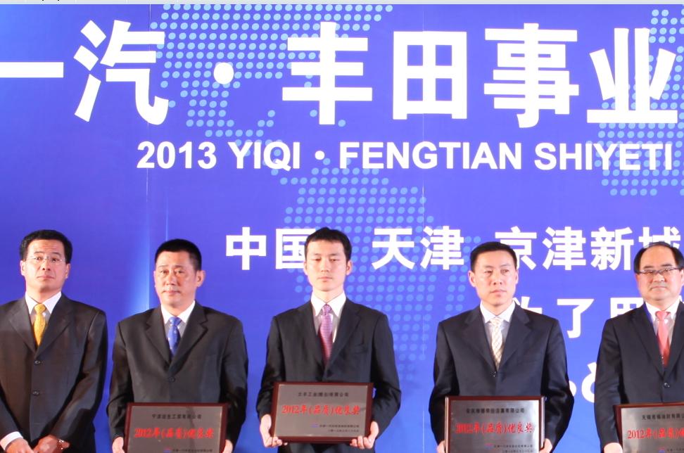 2013年3月29日,內(nèi)藤靖之部長代表TCY參加了在天津舉行的2013年度一汽豐田集團(tuán)供應(yīng)商大會。會中與TFTE延時部長,金井副部長,SFTM加藤增經(jīng)理以及TTCC寺町副總經(jīng)理進(jìn)行友好會晤。在會后的供應(yīng)商表彰大會中,我司獲得天津一汽豐田發(fā)動機(jī)有限公司和一汽豐田(長春)發(fā)動機(jī)有限公司兩家公司的“2012年度品質(zhì)優(yōu)良獎”。這代表著一汽豐田集團(tuán)的兩家主機(jī)廠對我司2012年度的質(zhì)量管理以及售后服務(wù)的充分肯定和嘉許。
