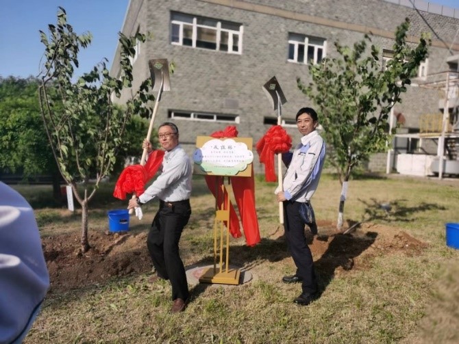 花開如夢(mèng),風(fēng)過有痕。作為日本獨(dú)資企業(yè),駐在員一般任期三至五年,這期間,他們把總部好的管理理念、工作方法傳遞給現(xiàn)地人員,也將現(xiàn)地公司真實(shí)的情況反饋給總部,為了紀(jì)念曾經(jīng)在公司工作過、付出過的駐在員,5月13日,在公司南側(cè)草坪召開「友誼林」創(chuàng)建活動(dòng),意在讓每一位駐在員將愛和希望播撒在公司。本次活動(dòng)的對(duì)象是5月25日即將任期期滿回國(guó)的清水副總經(jīng)理和丹羽總經(jīng)理助理。