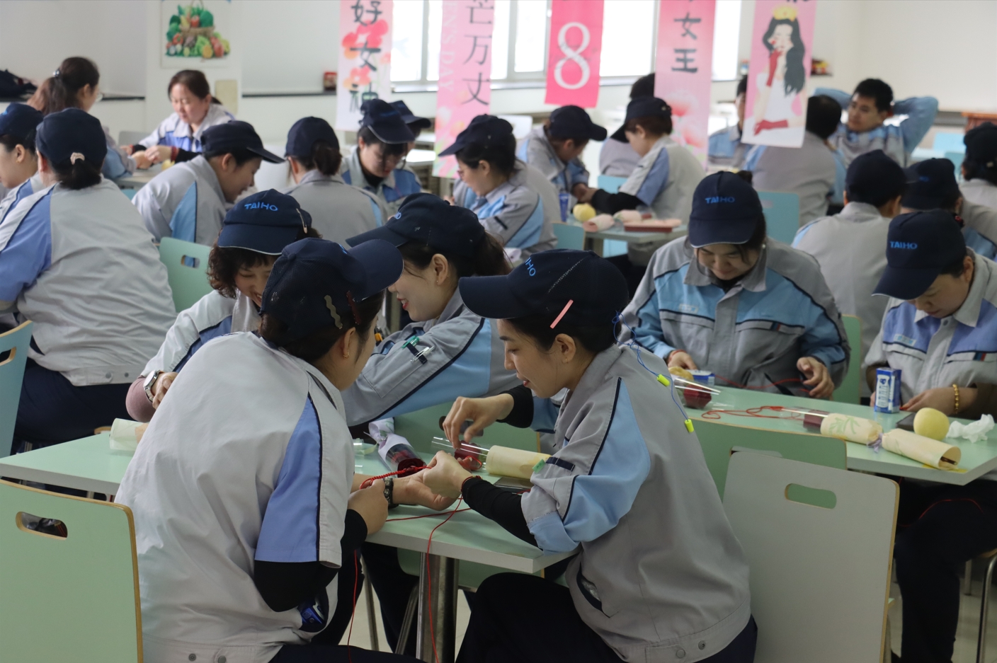 餐后,公司、工會特別策劃的“巧手織幸福”手鏈DIY活動將氣氛推向高潮。女職工們圍坐一堂,挑選飾品、編織絲線,互相交流技巧。活動現(xiàn)場歡聲不斷,條條精致手鏈見證著姐妹情誼。