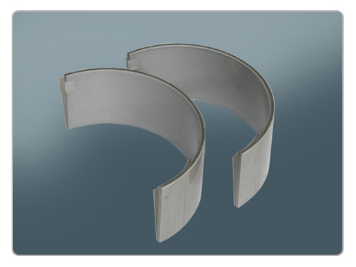 我公司生產的普通軸瓦主要有二金屬軸瓦和三金屬軸瓦(電鍍軸瓦),產品主要為主機廠配套,涉及60多個機型,150多種產品,直徑范圍為Φ20~Φ200mm,寬度為15~65mm。利用公司原有的技術,依托日本先進的生產線和技術,產品的精度達到了國內較高水平,軸瓦的寬度公差達到0.05mm,半圓周長高出度公差達到0.02mm,壁厚公差達到0.003mm,是國內其它廠家所無法比擬的。